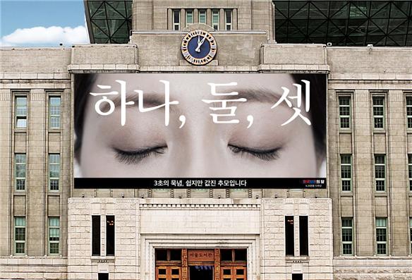 서울시가 준비한 이번 호국보훈의 달 꿈새김판은 경건한 표정으로 눈을 감고 있는 얼굴과 ‘하나, 둘, 셋’ 이라는 글자가 크게 담겨, 지나가는 사람들의 궁금증을 자아낼 법하다. 하단에 적힌 ‘3초의 묵념, 쉽지만 값진 추모입니다’라는 문구를 보면 꿈새김판이 말하고자 하는 바를 바로 이해할 수 있다.