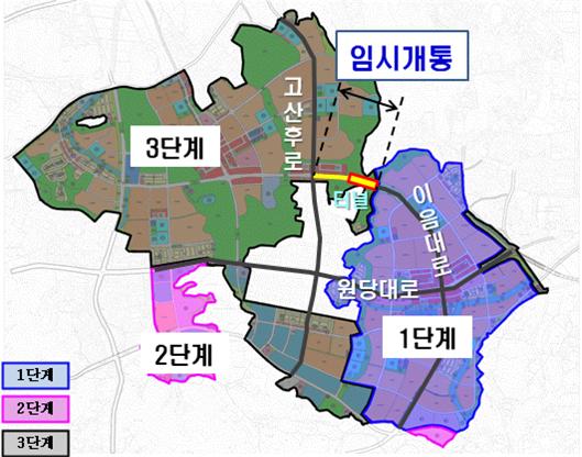 이음대로의 일부구간이 임시개통됨에 따라 그동안 1단계 입주민들이 일산대교, 불로동 방면으로 이동하기 위해 원당대로로 우회하였으나, 이음대로를 이용하여 운행거리 2km, 소요시간 약 10분을 단축하게 되었다.