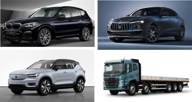 사진 왼쪽 위에서 시계방향으로 BMW X4 xDrive20d M Sport Package, 마세라티 르반떼 GT 하이브리드, FM 카고, XC40 Recharge Twin