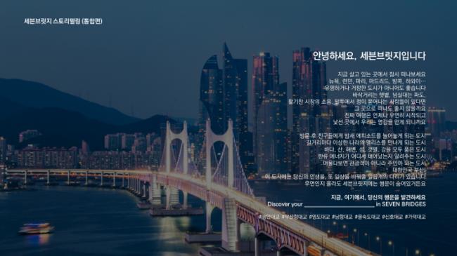 조유장 부산시 관광마이스산업국장은 “이번에 만든 세븐브릿지 BI와 스토리텔링 등을 잘 활용하고 관광객들과의 지속적인 소통과 교감을 통해 세븐브릿지 팬덤을 구축하겠다”라며, “앞으로도 부산여행이 유니크하고 특별한 여행이 될 수 있도록 부산만의 콘텐츠 개발에 노력하겠다”고 전했다.
