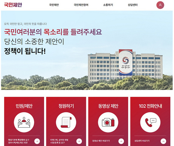 • 민원·제안, 청원, 동영상 제안, 전화안내 등 4개 창구로 구성