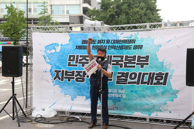 [일간환경연합 김경훈 기자] 민주우체국본부 노조는 24일 ‘지부장, 간부 결의대회’를 서울용산우체국 앞에서 조합원 다수가 참여한 가운데 진행했다.