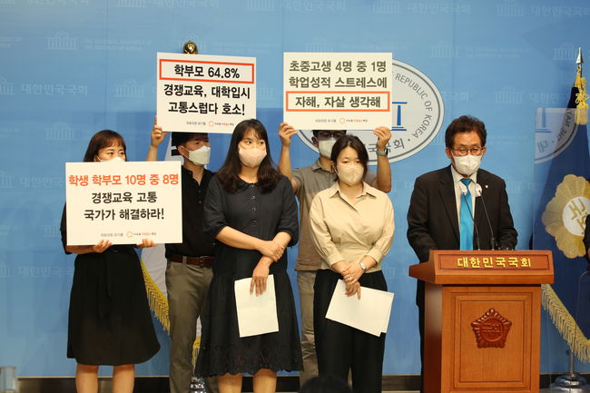 사교육걱정없는세상(사걱세)과 더불어민주당 유기홍 의원은 7일 국회 소통관에서 기자회견을 열고 `경쟁교육 고통 지표 설문조사` 결과를 발표했다.
