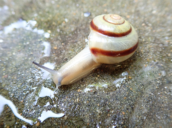 ▲ 띠무늬형 참달팽이.센터는 지난 2018년 홍도에서 참달팽이 5마리를 데려와 국내에서는 처음으로 기초생활사를 규명했으며 2020년에는 12마리를 인공증식하는 데 성공했다.