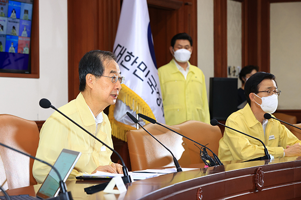 ▲ 한덕수 국무총리가 13일 서울 세종로 정부서울청사에서 열린 코로나19 중대본 회의를 주재하고 있다.(사진=국무조정실)한 총리는 “4차 접종은 코로나 중증화로의 진전을 예방할 수 있다”며 “정부는 대상 국민들의 백신접종을 강력히 권고한다”고 강조했다.