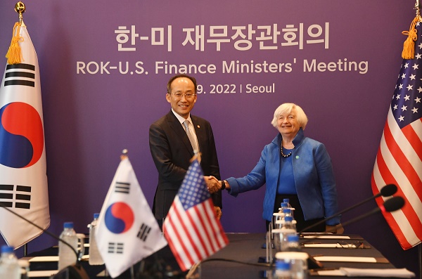 추경호 부총리 겸 기획재정부 장관과 재닛 옐런 미국 재무장관은 19일 오후 서울 소공동 롯데호텔에서 한미 재무장관 회의를 열고 이같은 내용을 논의했다.