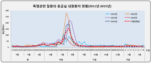 질병관리본부는 65세 이상 노인과 6세 이하 소아는 온열질환 발생빈도가 2배 이상 높아 온열질환에 취약하다며 더운 날일수록 소아와 노인에 대한 관심과 배려가 필요하다고 당부했다.