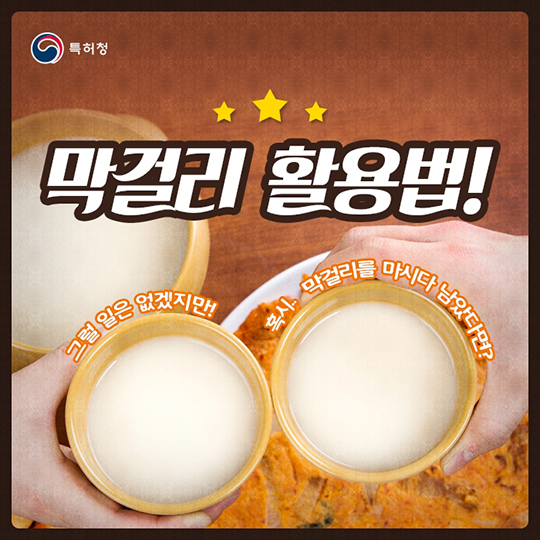 [일간환경연합 장민주기자]많은 사람에게 사랑받는 전통주 막걸리 생활속 적재적소에 활용이 가능한데요. 특허청과 함께 막걸리 활용법을 카드뉴스로 한 눈에 만나보세요.
