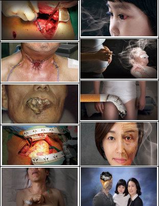 복지부는 폐암, 후두암, 구강암, 심장질환, 뇌졸중 등의 병변관련 5종과 간접흡연, 조기사망, 피부노화, 임산부흡연, 성기능장애 등 비병변관련 5종의 경고그림 10종을 확정했다.