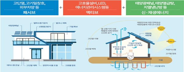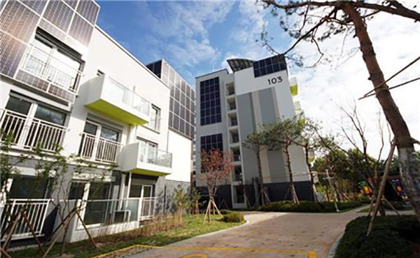 ▲ 건축물일체형 태양광 전지판이 설치된 제로에너지 주택. (사진=국토교통부)수열에너지는 하천수의 온도가 여름철에 대기보다 낮고 겨울철에 높은 특성을 활용해 건물에 필요한 냉난방에너지를 공급하는 친환경 기술이다. 수열에너지를 활용할 경우 기존의 냉난방 에너지를 절감하고 온실가스 배출을 크게 줄일 수 있다.