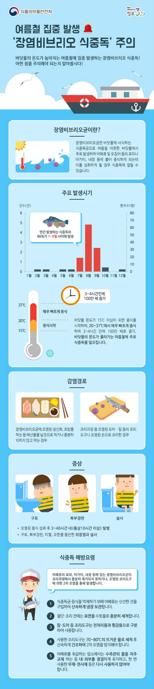 [일간환경연합 한선미 기자]다음은 여름철 집중 발생하는 장염비브리오 식중독에 대해 알아 보겠습니다. 그래픽 뉴스로 한눈에 만나보세요.