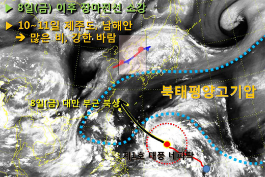 [일간환경연합 장영기 기자]제1호 태풍 ‘네파탁’의 영향으로 10~11일 제주도와 남해안에는 매우 강한 바람과 함께 많은 비가 올 것으로 보인다.
