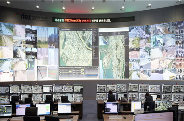 ▲ 인천광역시 스마트시티 통합운영센터.특히 지역 내 대중교통 부족 문제에 대응하기 위해 지자체·공공기관·기업이 협력체계를 구성해 지능형 합승택시, 수요응답형 버스 등의 서비스를 새롭게 도입한 성과도 우수하다고 평가받았다.