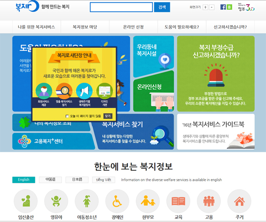 [일간환경연합 한선미 기자]나와 내 가족이 받을 수 있는 모든 복지서비스를 한 번에 확인할 수 있도록 국민복지포털 ‘복지로(www.bokjiro.go.kr )’ 가 개편됐다.