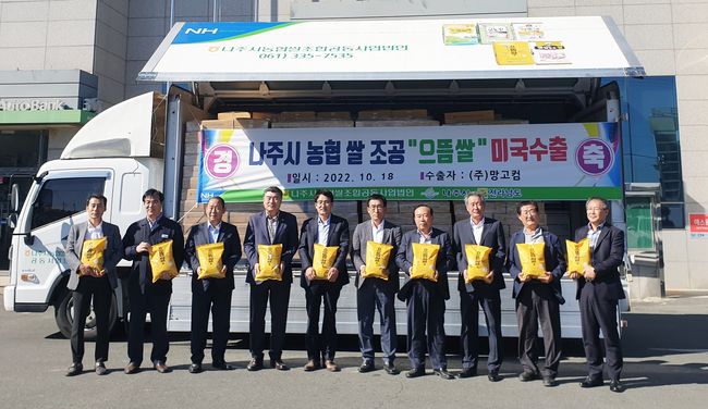 전라남도 나주시는 18일 동강 간척지 농부의 결실인 ‘으뜸쌀’ 미국 수출 상차식을 동강농협에서 개최했다고 밝혔다.