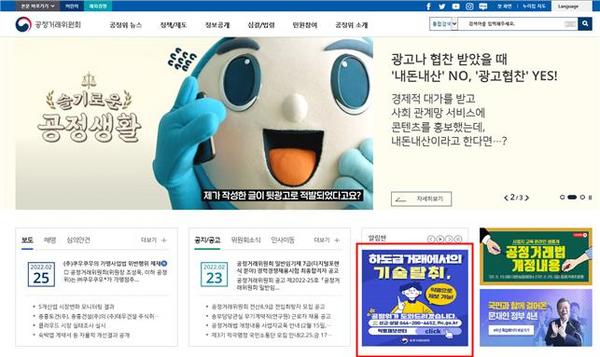 ▲ 공정위 누리집 화면 내 기술유용 익명제보센터 접속 안내