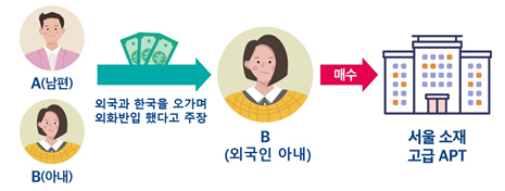 [일간환경연합 장민주 기자]#외국 국적 A씨는 서울 소재 아파트 매수자금 42억원 중 8억 4000만원을 외국에서 수차례 반입했다고 주장하나 신고 의무가 없는 반입 한도(하루 1만 달러)를 과도하게 초과해 정황상 자금 불법반입이 의심되는 상황이다.