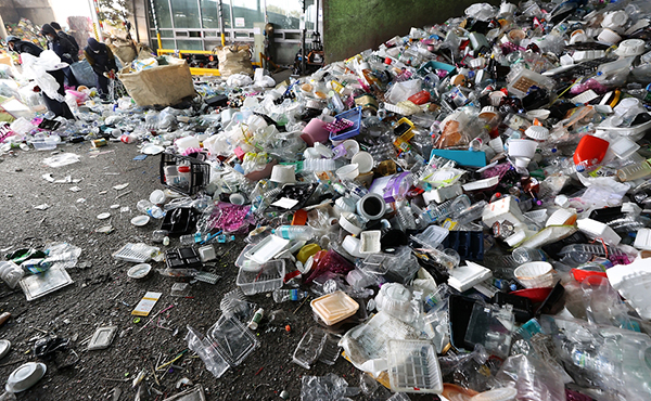▲ 경기 용인시 재활용센터에 일회용 플라스틱 등이 쌓여 있다.(사진=문화체육관광부 국민소통실)환경부는 오는 24일 일회용품 사용 줄이기 확대 시행을 앞두고 이 같은 내용을 포함한 세부적인 제도 시행방안을 1일 발표했다.