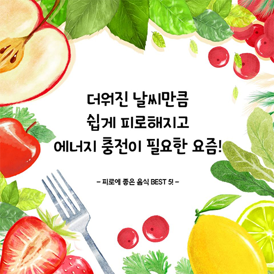 [일간환경연합 신상미 기자]일상에 활력을 더해줄 음식! 피로회복에 좋은 음식 BEST 5를 카드뉴스를 통해 알려드립니다.한눈에 만나 보세요.