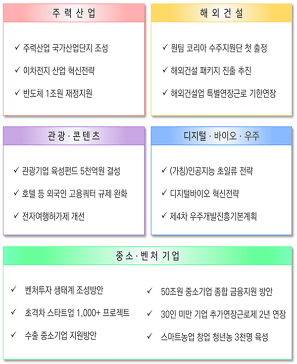 이에 반도체와 이차전지 등 경쟁력 초격차를 확보하고, 해외건설은 연 500억불 수주를 목표로 세계 4대 강국 달성을 추진한다.