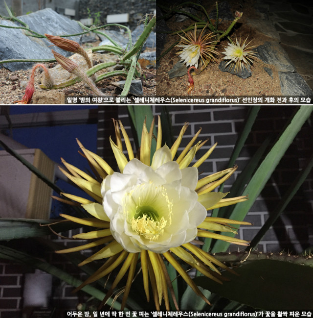 이유미 국립수목원장은 “아쉽게도 짧은 시간 동안 밤에만 꽃을 피우는 선인장이라 개화 모습을 관람객에게 공개하지 못했으나, 앞으로도 매년 개화 과정을 촬영하여 연구 자료로 활용함은 물론, 다양하고 생동감 있는 모습을 공개할 예정이다.”라고 밝혔다.