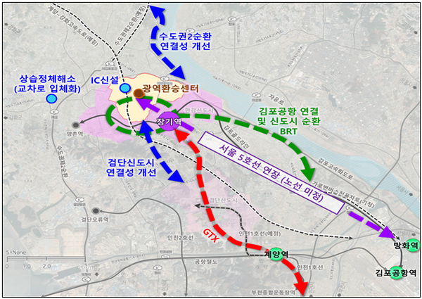 또 주변의 수도권제2순환·계양강화고속도로 확장과 인터체인지(IC) 신설을 추진한다. 검단 신도시와 연결 도로를 새로 만들어 인천 방면으로의 접근성도 높인다.