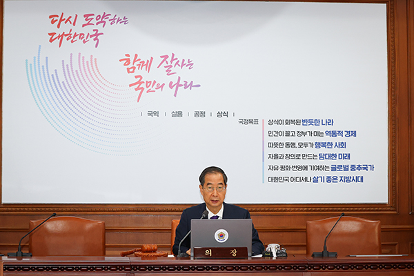 ▲ 한덕수 국무총리가 14일 서울 세종로 정부서울청사에서 열린 국무회의를 주재하고 있다.(사진=국무조정실)한 총리는 “방역당국은 그간 준비한 방역과 의료 대응 역량을 충분히 활용해 이번 재유행을 조기에 안정시키고 감염된 분들이 조속히 회복할 수 있도록 최선을 다해주기 바란다”고 강조했다.