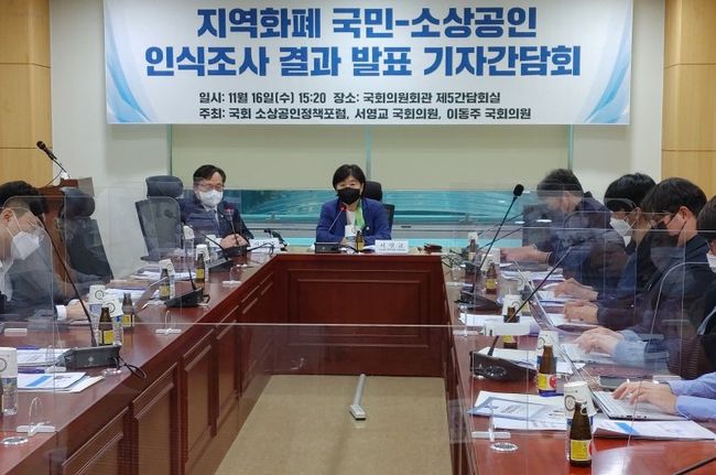 국회 소상공인정책포럼(대표의원 서영교·연구책임의원 이동주)은 16일 오후 국회에서 기자간담회를 열어 ‘지역화폐에 대한 인식조사’ 결과를 발표했다.