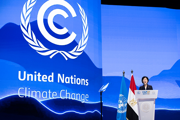 ▲ 한화진 환경부 장관이 지난 15일(현지시간) 이집트 샤름 엘 셰이크 국제컨벤션센터에서 개최된 제27차 유엔기후변화협약 당사국 총회(COP27) 고위급 회의 기조연설에서 탄소중립 의지를 표명하고 있다.(사진=환경부)이번 총회는 극한 가뭄 등 지구온난화로 심각한 피해를 받고 있는 아프리카 대륙에서 개최했던 만큼 ‘적응’, ‘손실과 피해’ 등의 의제가 선진국과 개도국 간의 최대 쟁점으로 논의됐다.