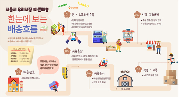 서울시가 시행하는 ‘우리시장 빠른배송’ 서비스는 국토부가 공모한 ‘디지털 물류서비스 실증사업’에 선정돼 국비 8억원과 지방비 8억원을 지원받아 추진된다.