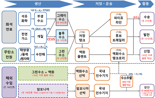 암모니아-수소 추출플랜트와 액체수소 인수기지 및 수소 전용 배관망 등 핵심기술도 국산화해 수소 생태계를 완성해 나갈 예정이다.