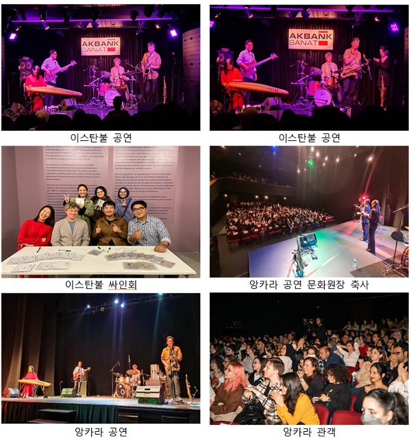 ▲ 2022 재즈코리아 페스티벌 현장. (사진=주튀르키예한국문화원)문화원은 “재즈를 기반으로 가야금의 동양적 선율을 더해 독특한 매력과 재미를 느낄 수 있는 시간을 관람객들에게 선사했다”며 “공연 후 마련된 앨범 판매와 사인회에서도 많은 관람객들이 참여했다”고 설명했다.