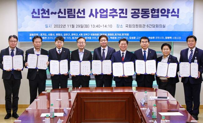 이번 협약서에는 신천~신림선의 5차 국가철도망 계획 반영을 위해 상호 협력한다는 내용이 담겨있다.