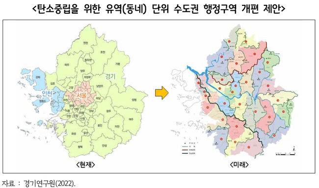 탄소중립을 위한 유역(동네) 단위 수도권 행정구역 개편 제안.