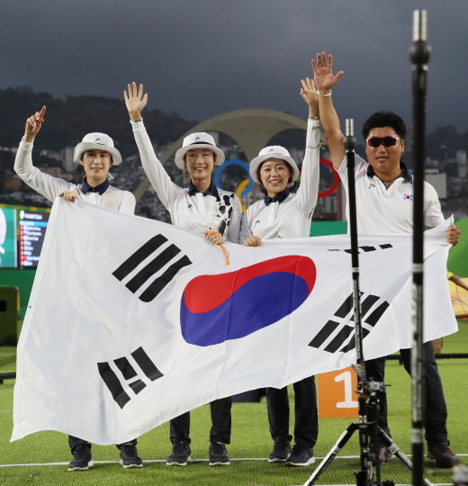 장혜진-최미선-기보배로 구성된 여자 양궁은 이번 대회에서 올림픽 8회 연속 금메달을 거머쥐었다.