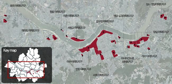 현재 서울 시내에는 개발 잔여지 5개 지구(반포, 서빙고, 청담‧도곡, 이촌, 압구정) 91개 필지가 남아있다.