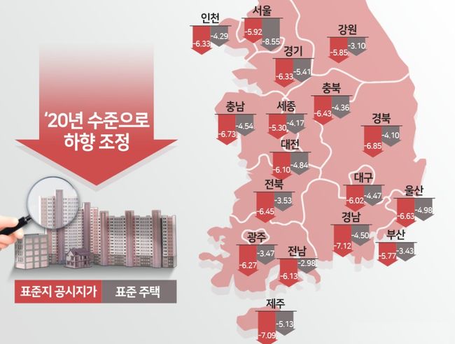 `23년 전국 표준지‧표준주택 공시가격 5.9% 하락 (그래픽=국토교통부 제공)