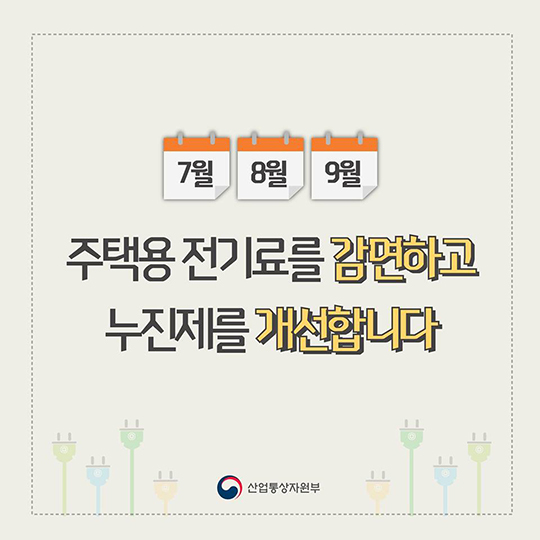 [일간환경연합 신상미 기자]7월부터 9월까지 주택용 전기료를 감면하고 누진세를 개선합니다. 평균 19.4%의 전기료가 인하되는데요. 카드 뉴스로 한눈에 확인 가능 합니다.