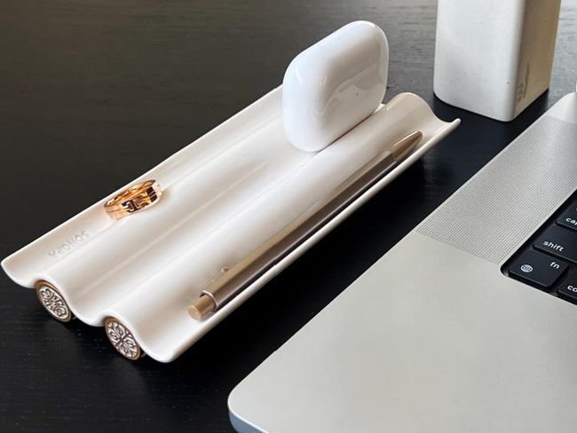 ▲기와형태 수막새 문양 트레이는 4종의 수막새 문양 무광도금 자석과 세라믹 코팅으로 고급스러움을 살렸다. 수막새 문양에서 백제시대만의 세련되고 우아한 문화를 느낄 수 있으며 펜슬, 액세서리 등 일상용품을 올려놓거나 인센스 스틱 홀더로 활용이 가능하다.