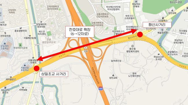 하남 황산~천호대로 12차로 전체 30일부터 확장 개통