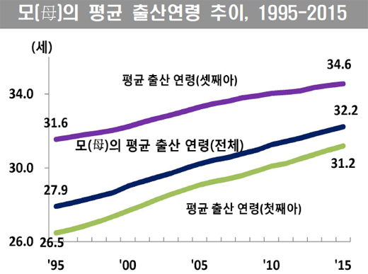 산모의 평균 출산연령은 20년 전만 해도 27.9세였으나 이후 매년 최고치를 찍으며 4.3세 늘어났다.