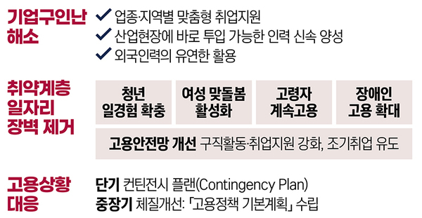 인력수급 미스매치 해소를 위한 고용서비스를 강화하고 혁신 직업훈련을 통해 현장에 바로 투입할 수 있는 핵심인력 양성을 확대한다.