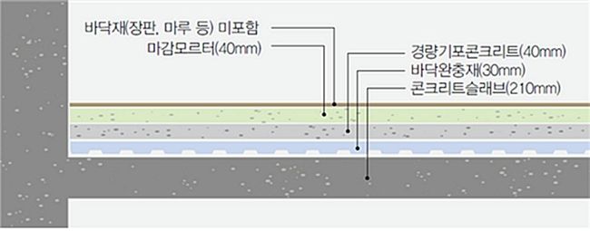 그러나 층간소음 차단성능 제고를 위해 사전 검토를 거쳐 선정한 바닥구조를 적용중인 현장으로, 현재까지 인정받은 중량 1·2등급 바닥구조는 현장에 적용하기 어려운 측면이 있어 경량 1등급·중량 3등급의 사전인정 바닥구조 중에서 시공성, 경제성 등을 종합 검토하여 현장에 적용중이다.