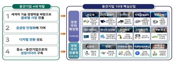또 15대 핵심 산업 내 유망 중소기업을 선발해 중소→중견기업으로의 진입(성장사다리) 속도를 높이는 지원트랙도 운영한다.