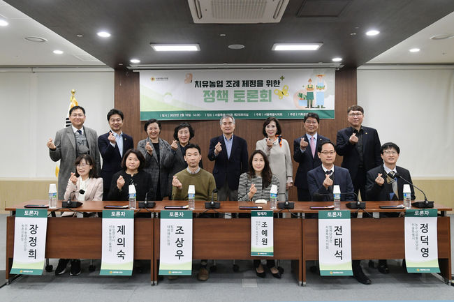 한편 이날 토론회는 서울시의회 김현기 의장을 비롯해 도문열 도시계획균형위원회 위원장, 김지향 의원, 신복자 의원, 이민옥 의원, 장태용 의원과 각계 관계자 등 50여명이 참석해 의견을 나눴고, 치유농업 조례는 제316회 임시회(3월 3일 노동공정상생정책담당관 안건심사)에서 심사될 예정이다.
