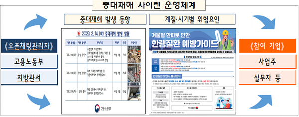 고용노동부가 20일부터 현장의 기업관계자 등에게 전국의 중대재해 발생 상황을 알리고 각종 산업안전 관련 정보를 공유하는 ‘중대재해 사이렌’을 구축·운영한다.