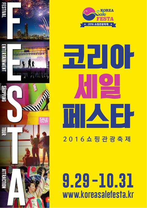 전국 단위의 대규모 할인행사(29일∼10월9일)와 외국인 대상 관광 프로그램(10월1∼31일), 지역별 55개 문화축제(29일∼10월31일)가 한데 어우러진 역대 최대 규모의 쇼핑관광축제다.