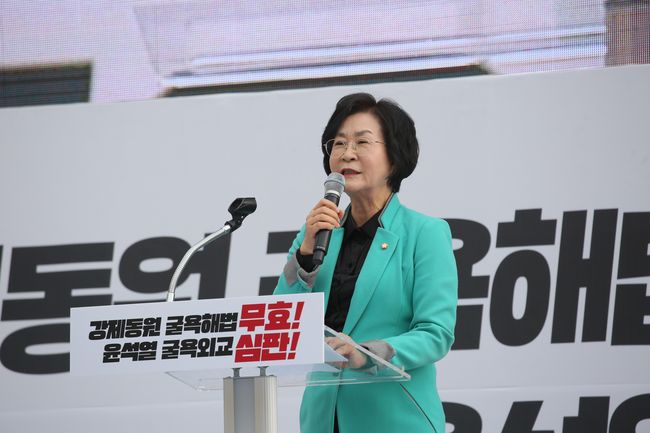 그는 “(이번 배상안은) 전범 기업에게 처참하게 인권을 유린당한 피해자와 그동안 역사와 정의를 위해 투쟁한 국민들의 모든 노력을 짓밟아서 쓰레기통에 내다버린 것”이라며 “윤 대통령은 피해자들의 권리를 발로 걷어차고 조롱하고 있다. 윤 정권의 이 굴욕적 해법을 용서할 수 없다”고 말했다.