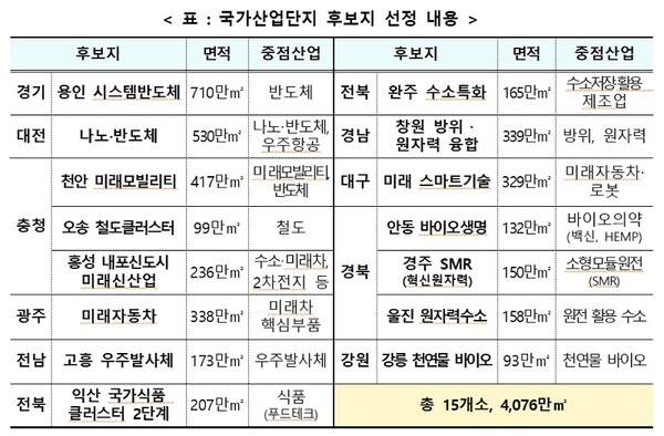 [일간환경연합 김경훈 기자]정부가 미래 첨단산업 육성을 위해 전국에 15개 ‘국가첨단산업단지(산단)’를 조성한다.