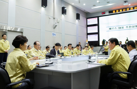 박 대통령은 이어 “메르스의 감염 경로를 차단하고 지역사회로 전파되는 것을 막기 위해 중앙정부와 지자체 간의 협조, 중앙정부 방역당국과 지자체 방역대책본부 간의 협력이 필수불가결한 요소”라며 “안전처와 행자부를 중심으로 메르스 대책지원본부가 매개 역할을 잘 해줘야 하겠다”고 주문했다.